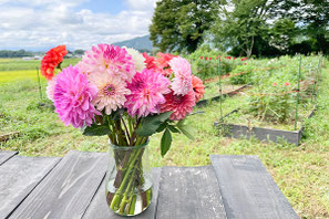 植え付けから有機栽培にこだわり、ダリア以外にも芍薬のほか、ダリアに合う草花も栽培しています。