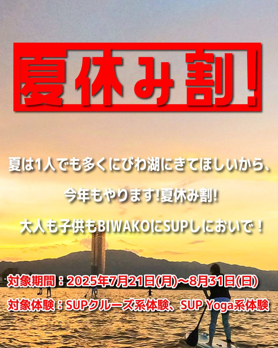 夏の夕暮れの心地よい時間帯に、涼しい湖上に浮かびながら最高の時間を過ごしてみよう! 街、びわ湖、公園、全てが綺麗で感動的になる時間を狙って、極上のジブンへのご褒美タイムを作ってあげよう!