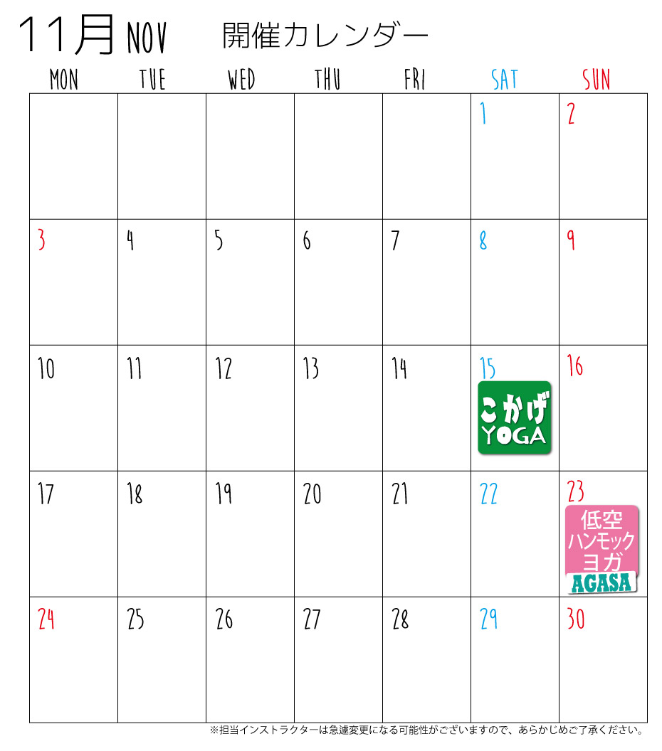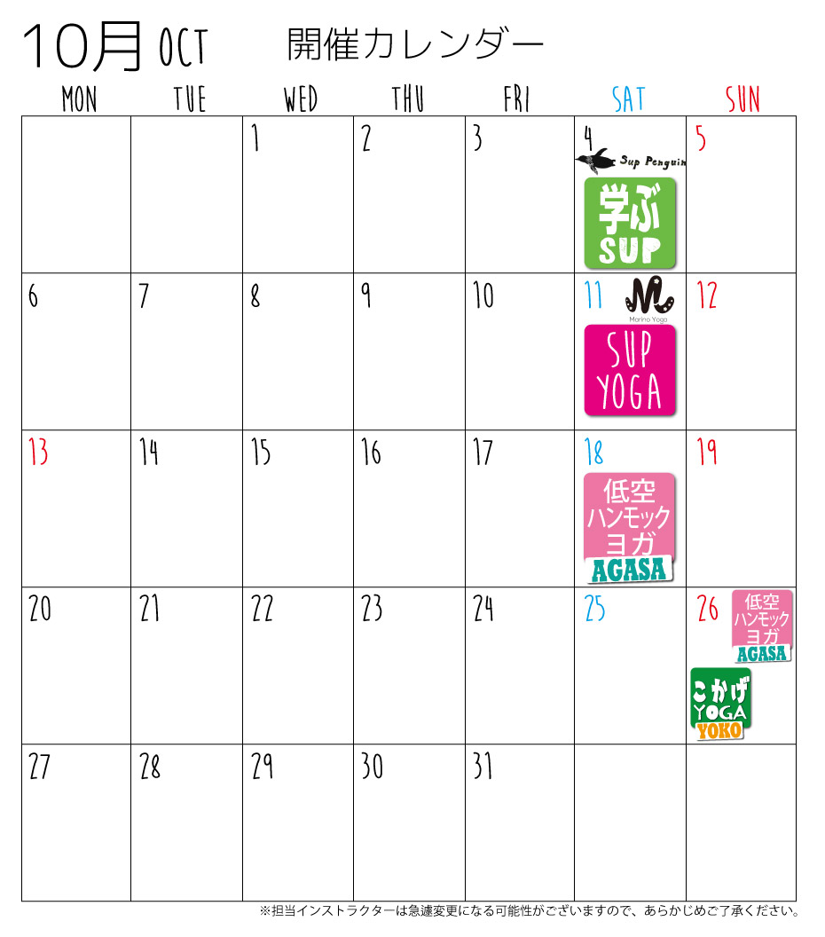各インストラクターの担当日は下のカレンダーからCHECK!